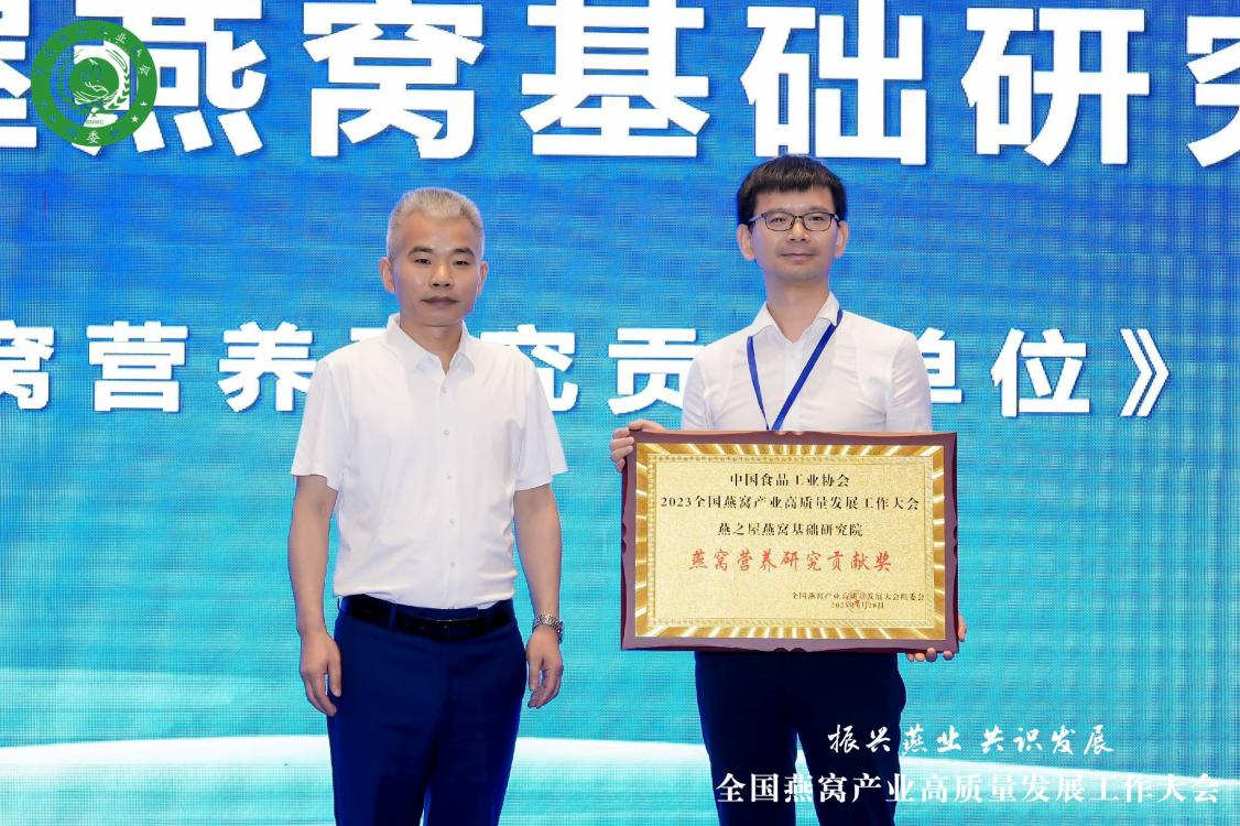 圖:燕之屋燕窩基礎(chǔ)研究院榮獲燕窩營養(yǎng)研究貢獻獎