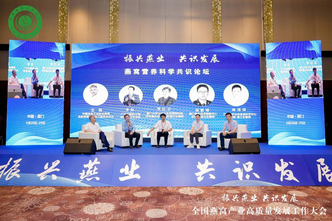 為推進燕窩產(chǎn)業(yè)高質(zhì)量發(fā)展和品牌建設(shè),穩(wěn)固業(yè)態(tài)基礎(chǔ),營造行業(yè)良好的經(jīng)營氛圍,6月28日-29日,由中國食品工業(yè)協(xié)會主辦,燕之屋協(xié)辦的“振興燕業(yè),共識發(fā)展”2023全國燕窩產(chǎn)業(yè)高質(zhì)量發(fā)展工作大會在廈門盛大舉行。中國食品工業(yè)協(xié)會副秘書長張京玉,中國食品工業(yè)協(xié)會燕窩及膠類蛋白食品工作委員會會長王強,燕之屋品牌總監(jiān)沈曉聰,馬來西亞燕窩產(chǎn)業(yè)出口協(xié)會會長、拿督蔡千根,柬埔寨燕窩生產(chǎn)出口協(xié)會會長吳慧珍,中國醫(yī)學(xué)科學(xué)院北京協(xié)和醫(yī)院臨床營養(yǎng)科主任醫(yī)師馬方,福建省農(nóng)林大學(xué)食品學(xué)院副院長張怡,香港科技大學(xué)研究員董婷霞,華南理工大學(xué)教授任嬌艷,江南大學(xué)未來食品科學(xué)中心教授、碩士生導(dǎo)師陳茂深,廣州中醫(yī)藥大學(xué)教授、博士生導(dǎo)師李耿,廈門大學(xué)公共衛(wèi)生學(xué)院副教授、碩士生導(dǎo)師李紅衛(wèi),等領(lǐng)導(dǎo)、專家和嘉賓出席大會。眾多食品行業(yè)及燕窩行業(yè)專家學(xué)者、企業(yè)家、從業(yè)者共聚一堂,共同探討燕窩行業(yè)未來發(fā)展規(guī)劃。