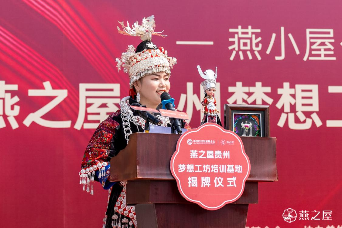 凝聚企業(yè)力量,激活非遺文化,賦能鄉(xiāng)村振興。2022年11月,燕之屋遠赴貴州啟動“天才媽媽”貴州苗繡夢想工坊,將非遺傳承與女性幫扶相結(jié)合,助力苗繡文化的弘揚與傳承,為當?shù)乩C娘打造美好生活新起點。今年8月16日,燕之屋再度聯(lián)合中國婦女發(fā)展基金會,通過“燕小屋公益成長計劃”揭牌啟動燕之屋貴州夢想工坊培訓基地。燕之屋支持的“天才媽媽”貴州苗繡工坊主理人、貴州古苗疆工貿(mào)有限公司負責人劉英出席活動,向在座領(lǐng)導嘉賓們分享了燕之屋貴州苗繡夢想工坊成立以來的成果,并說道:“燕之屋貴州夢想工坊培訓基地的啟動,為我們傳承與發(fā)揚苗繡事業(yè),助力鄉(xiāng)村振興賦予了新的使命與愿景,是對苗繡工坊扶持的延續(xù),更是對少數(shù)民族文化的傳承與發(fā)揚。我們將繼續(xù)努力,以培訓基地為新的依托,去挖掘更多‘天才媽媽’,帶動更多手工藝女性就業(yè),在鄉(xiāng)村女性努力追夢力量的指導與鼓舞下,詮釋實現(xiàn)社會價值與人生價值的巾幗風采。”