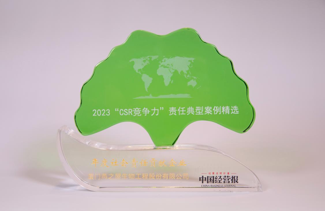 圖:燕之屋榮獲2023“CSR競爭力”責(zé)任典型案例精選“年度社會責(zé)任貢獻企業(yè)”