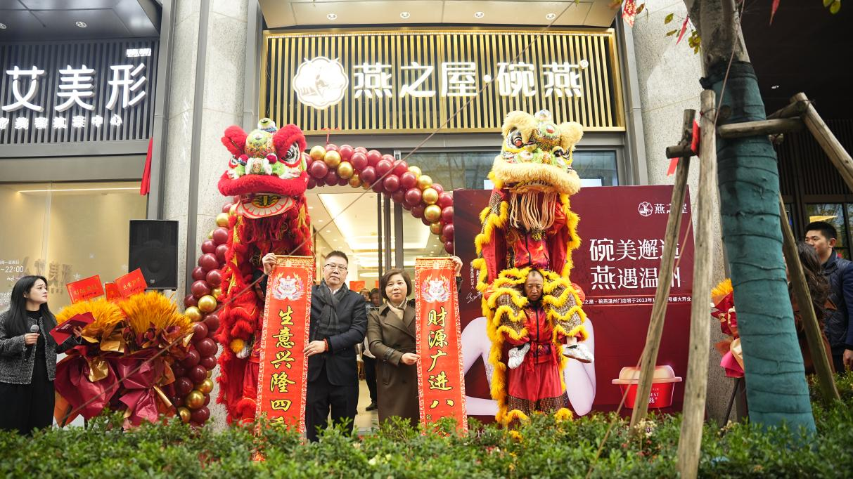 當(dāng)天,紅毯鋪地共歡聚,鑼鼓喧天喜盈門。在主持人的邀請下,六位領(lǐng)導(dǎo)、貴賓為燕之屋溫州開元店的盛大開幕剪彩。隨后,恒仁商貿(mào)有限公司總經(jīng)理鄭小倫,恒仁商貿(mào)有限公司副總經(jīng)理林素珍為祥獅點睛,祝賀新店“生意興隆四季旺,財源廣進(jìn)八方來”。燕之屋溫州開元店就此啟航。