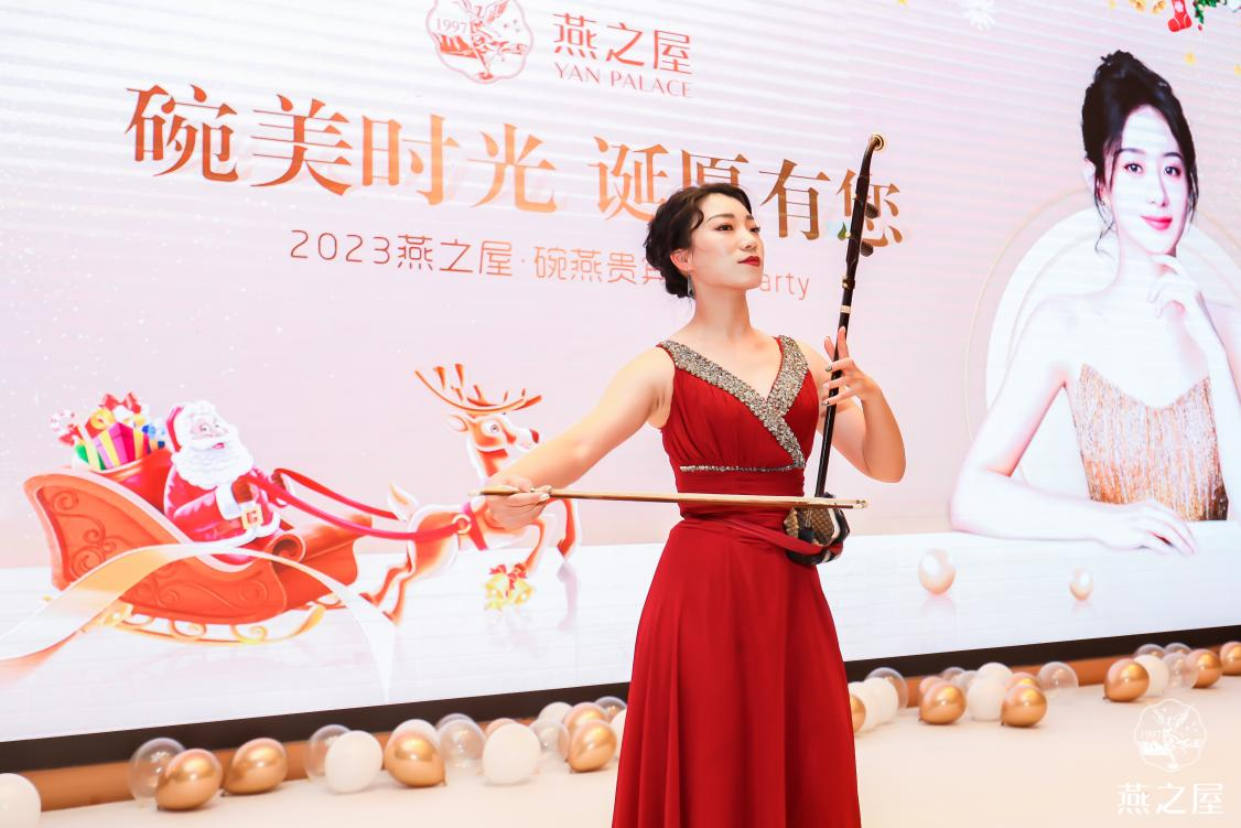 12月25日,恰逢圣誕節(jié),宴會(huì)廳內(nèi)外燈光璀璨,香檳色氣球點(diǎn)綴其間,處處洋溢著節(jié)日的氛圍。燕之屋特別為每位嘉賓準(zhǔn)備圣誕糖果盒和龍年玩偶伴手禮,禮物包裹著溫情的節(jié)日祝福,為凜凜冬日帶來(lái)一份別樣的暖意。在觥籌交錯(cuò)間,賓客們談笑風(fēng)生,同時(shí)欣賞嘉賓二胡演奏《我和我的祖國(guó)》與《今夜無(wú)眠》、燕之屋團(tuán)隊(duì)舞蹈《相親相愛(ài)》等,席間擊鼓傳碗、你來(lái)比劃我來(lái)猜、自由點(diǎn)歌等互動(dòng)游戲陸續(xù)上演,五輪抽獎(jiǎng)活動(dòng)更是驚喜不斷,隨著豪華大禮和幸運(yùn)兒依次揭曉,笑聲、掌聲此起彼伏,晚宴現(xiàn)場(chǎng)氣氛燃至高點(diǎn)。