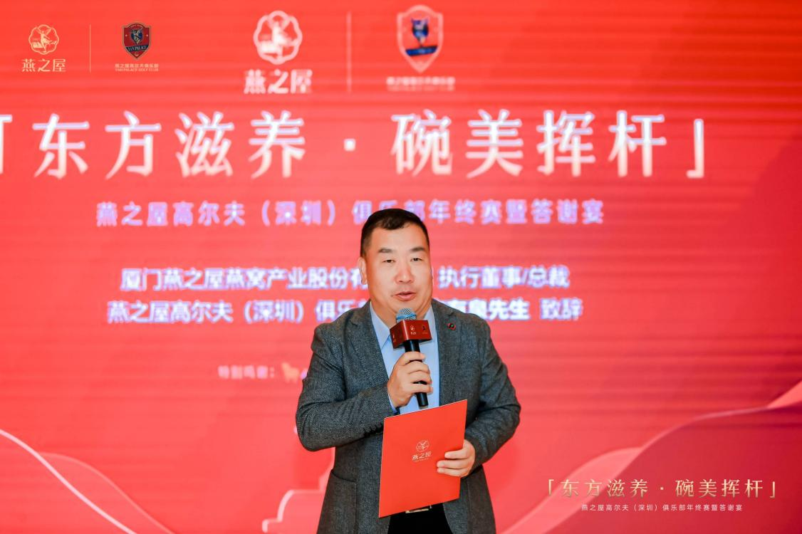 比賽結(jié)束后,所有嘉賓以及會員共聚答謝宴,品鑒佳肴、再續(xù)情誼。燕之屋執(zhí)行董事兼總裁、燕之屋高爾夫(深圳)俱樂部會長李有泉上臺發(fā)表致辭,并與眾領(lǐng)導嘉賓共同舉杯祝酒。燕之屋*26年專注高品質(zhì)燕窩(*燕之屋指燕之屋企業(yè)),堅持“源于天然,美與健康”的品牌理念,匠造健康、營養(yǎng)、美味、便捷的優(yōu)質(zhì)燕窩,贏得市場好口碑,于2023年在香港成功上市(股票代碼:01497.HK)。晚宴上,燕之屋旗下高端燕窩品牌“碗燕”產(chǎn)品碗燕·濃鮮款作為頭盤菜亮相餐桌,其營養(yǎng)優(yōu)質(zhì)、口感濃稠,博得一眾好評。碗燕·濃鮮款甄選東南亞高品質(zhì)金絲燕燕窩,燕窩原料100%正規(guī)進口,天然珍貴。采用121℃鮮萃工藝,密封燉煮,牢牢鎖住新鮮,產(chǎn)品0脂肪、0防腐劑、0增稠劑、0添加劑*(*指本產(chǎn)品生產(chǎn)過程中0%添加防腐劑山梨酸鉀、苯甲酸鈉,0%添加增稠劑瓊脂),是日常滋養(yǎng)的安心之選,也是高爾夫運動人士的“碗”美拍檔。