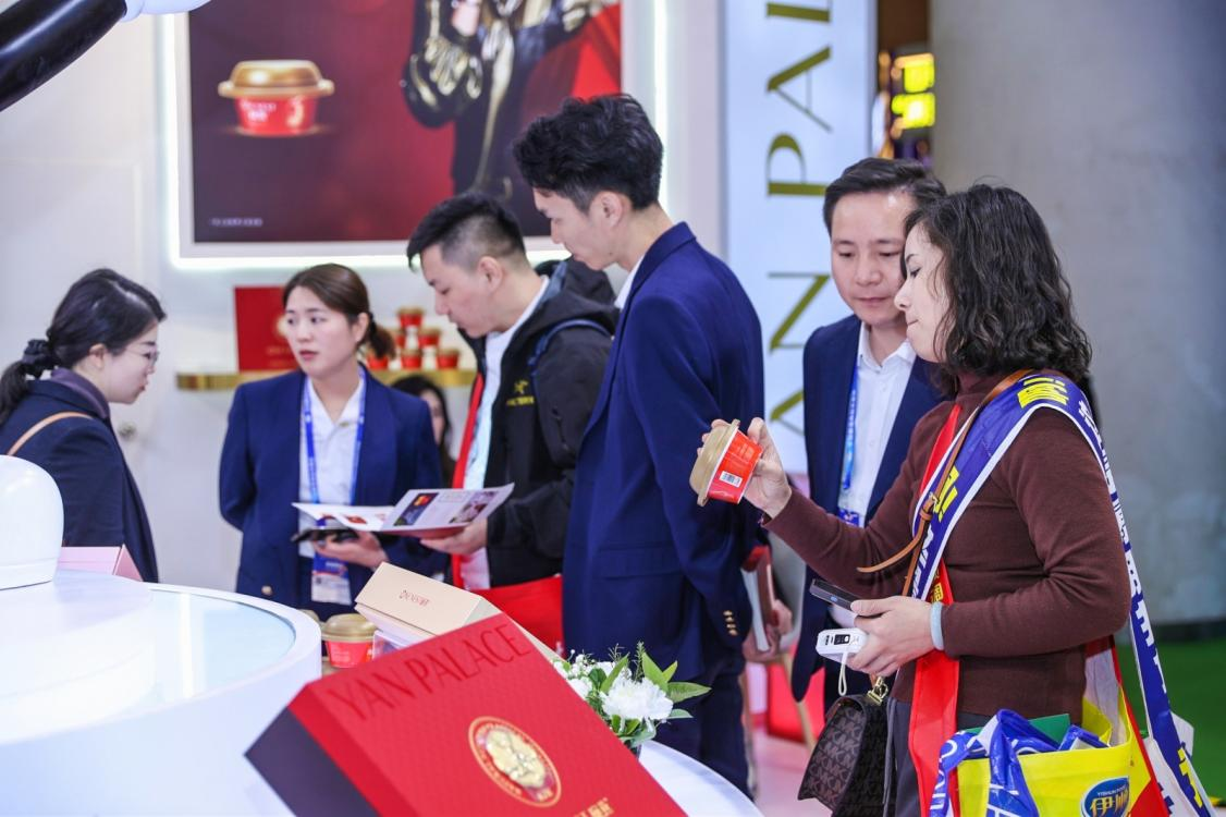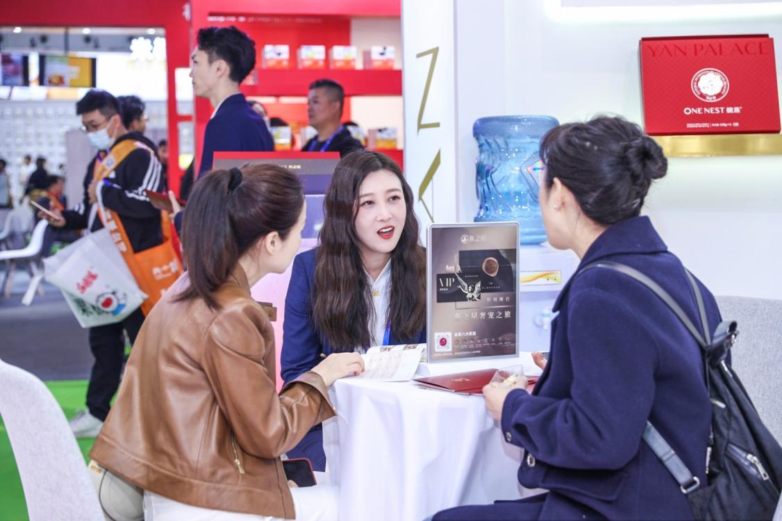 憑借高品質(zhì)與好口碑,截至2022年,燕之屋已連續(xù)七年燕窩銷售規(guī)模全國第一*(*燕之屋在2016-2022年中國境內(nèi)包裝燕窩行業(yè)連續(xù)七年燕窩銷售額全國第一,備注:北京中研世紀(jì)咨詢有限公司,全國包裝燕窩品牌,中國境內(nèi)2016年-2022年全年終端零售額分別統(tǒng)計排名;包裝燕窩指即食燕窩、鮮燉燕窩、干燕窩;于2023年2月9日完成調(diào)研),2022年在全國220個城市核心地段開設(shè)700多家實(shí)體終端,燕窩專營門店數(shù)量全國領(lǐng)先(燕之屋在2022年中國境內(nèi)包裝燕窩行業(yè)燕窩專營門店數(shù)量全國領(lǐng)先,來源:弗若斯特沙利文基于中國境內(nèi)包裝燕窩行業(yè)獨(dú)立市場研究),夯實(shí)燕窩行業(yè)地位,成為越來越多消費(fèi)者心中的燕窩優(yōu)選品牌?,F(xiàn)場,燕之屋展位人氣火爆,前來咨詢和洽談的客商、觀展人群絡(luò)繹不絕,熱鬧非凡。