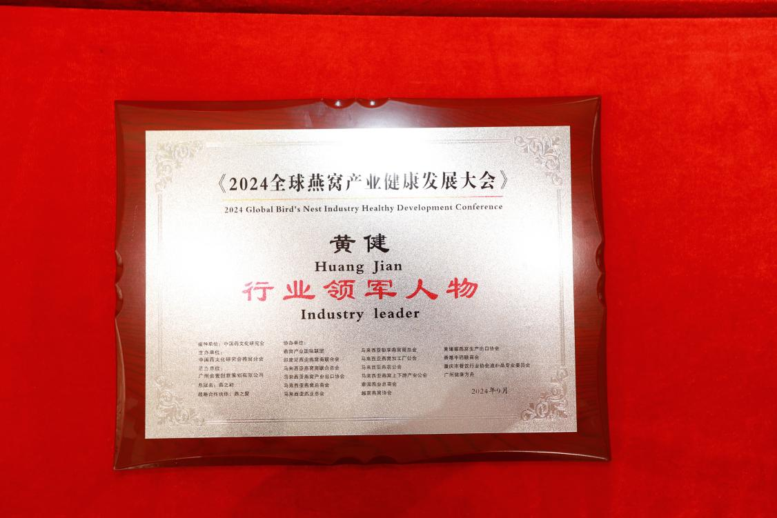 9月23日,在榜樣的力量一行業(yè)表彰盛典上,燕之屋憑借先進(jìn)的創(chuàng)新引領(lǐng)力、卓越的產(chǎn)品競爭力、強(qiáng)勁的品牌影響力榮獲行業(yè)領(lǐng)軍品牌大獎(jiǎng)、行業(yè)匠心品牌大獎(jiǎng)、技術(shù)創(chuàng)新大獎(jiǎng),燕之屋創(chuàng)始人、執(zhí)行董事兼董事長黃健榮獲行業(yè)領(lǐng)軍人物;燕之屋傾情助力2024全球燕窩產(chǎn)業(yè)健康發(fā)展大會(huì),進(jìn)一步推動(dòng)燕窩產(chǎn)業(yè)的創(chuàng)新發(fā)展,促進(jìn)燕窩文化的傳承與交流,為行業(yè)的繁榮貢獻(xiàn)力量,獲頒《2024全球燕窩產(chǎn)業(yè)健康發(fā)展大會(huì)》戰(zhàn)略合作單位,并成為《2024全球燕窩產(chǎn)業(yè)健康發(fā)展大會(huì)》唯一指定碗燕即食燕窩品牌,燕之屋公關(guān)總監(jiān)楊航上臺(tái)領(lǐng)獎(jiǎng)。